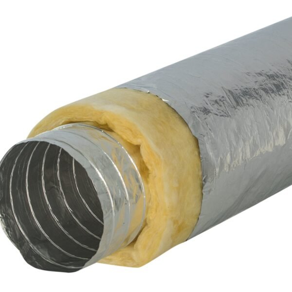 Panneau rigide en laine minérale URSA AIR avec technologie InCare pour la construction de conduits de climatisation, selon la norme UNE-EN 14303, recouvert d’un complexe kraft-aluminium renforcé sur sa face extérieure et d’un tissu absorbant acoustique noir à haute résistance mécanique à l’intérieur, avec les bords longs bordés.